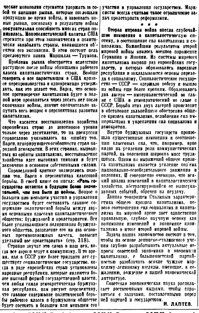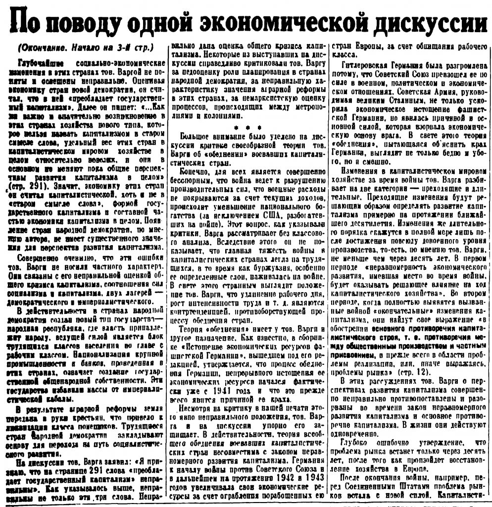 От редакции: Окончание материала, напечатанного в газете «Правда» 26 января 1948 г. под названием «По поводу одной экономической дискуссии».
